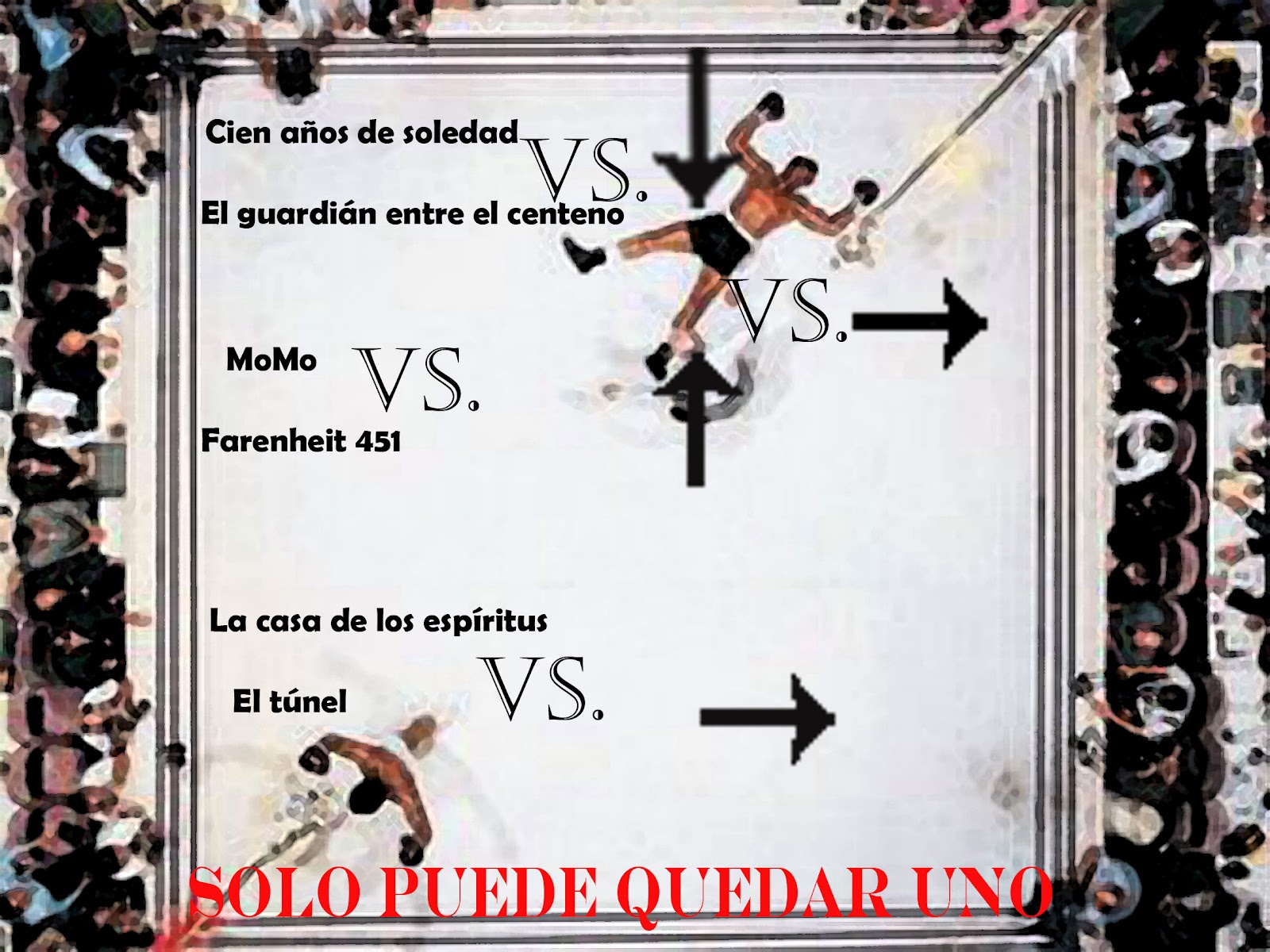 Cada día de competición de estas #olimpiadasliterarias, al equipo de La Milana Bonita se nos ponen los pelos de punta. Por ejemplo, el primer día todos anduvimos un poco apenados porque El guardián entre el centeno dijo adiós en la primera ronda (Cien años de soledad no le dio opción). El segundo día, la distopía de Fahrenheir 451 también nos abandonó frente al poder persuasivo de los hombres grises. Y por último, ayer, vimos cómo La casa de los espíritus caía en el ring de combate por culpa de la pluma del bibliotecario ciego. ¿Qué tendremos que vivir hoy? ¿Seguirá la lucha fratricida entre libros dejándonos vacíos por un lado y alegres por otro? Vosotros sois los culpables, vosotros tenéis la capacidad de hacer que uno de los elegidos se alce con la gloria. Los libros que competirán hoy son: