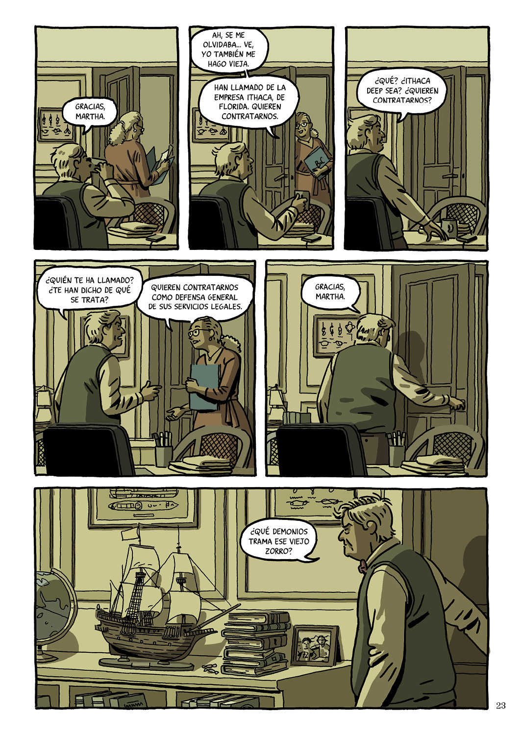 Si por algo destaca El tesoro del cisne negro es que tiene esa capacidad magnética que te impide soltarla hasta el final. Muchas veces se exagera la expresión “me la leí del tirón”, pero en este caso fue literalmente así. En primer lugar, porque está basada en hechos reales: la recuperación por parte del Gobierno de España de un valiosísimo tesoro que había usurpado una empresa cazatesoros estadounidense. ¿Recuerdan esos titulares que hablaban de pleitos varios contra la empresa Odyssey Marine Exploration? Pues El tesoro del cisne negro nos mete dentro de esa historia, y de qué manera. El ritmo está perfectamente calculado para embelesar a un lector que vivirá desde persecuciones a reuniones de alto voltaje en los despachos del poder. Los hechos comienzan en 2007, cuando una empresa, en el cómic denominada Ithaca, se lleva a Florida 600.000 monedas de oro de un pecio español hundido en algún punto del Atlántico, cerca de las cosas españolas. Con la sospecha de que ese tesoro pertenecía a España, se produce un proceso de investigación que permite confirmarlo para, actos seguido, reclamarlo. La justicia de EEUU le dio la razón a España, pero oscuros intereses aún quisieron torpedear la vuelta de las monedas.